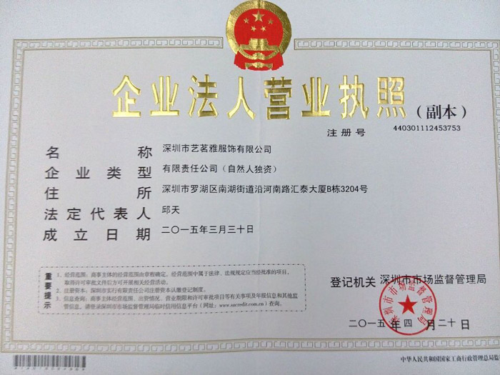 深圳市艺茗雅服饰设计有限责任公司 版权所有